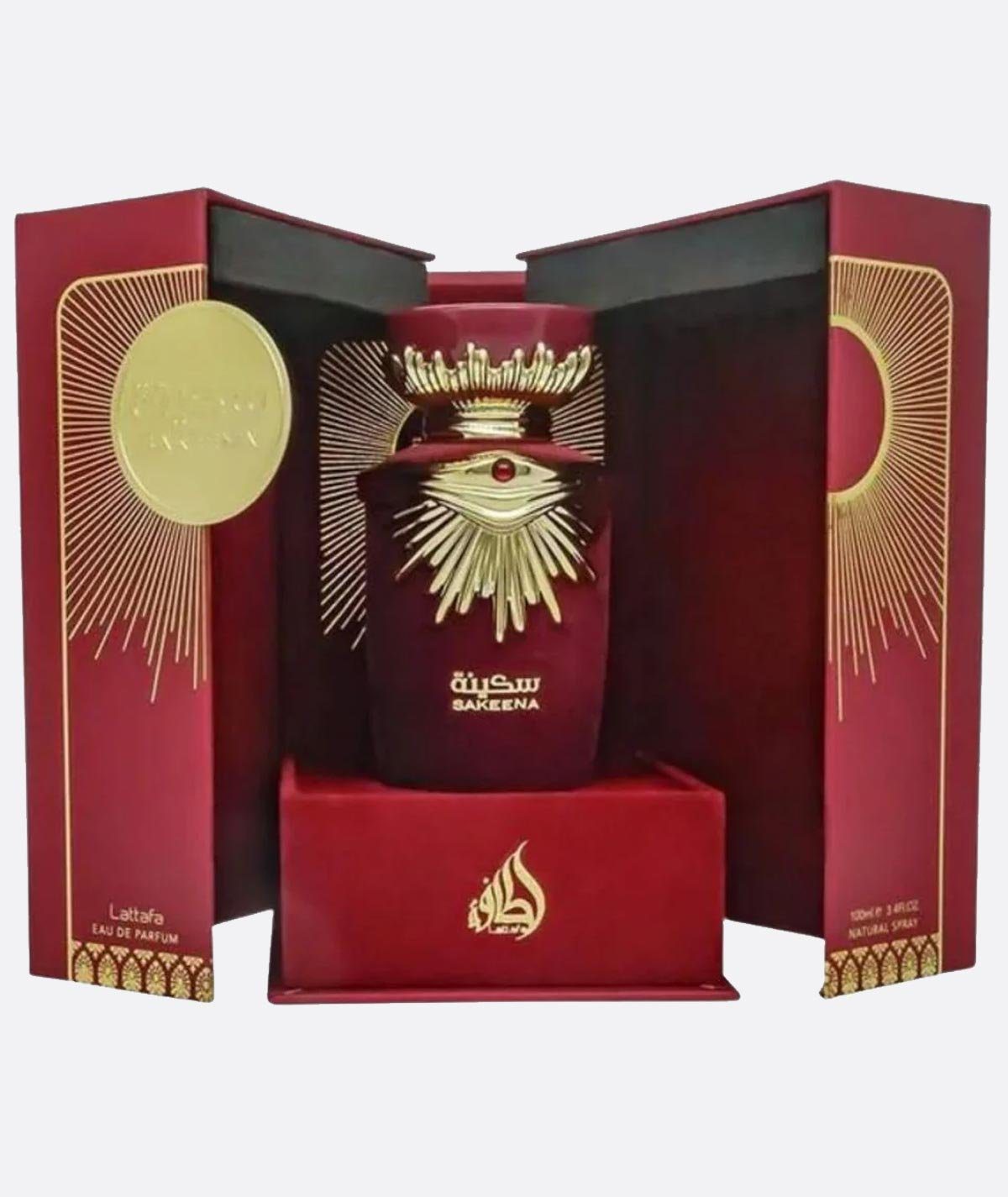 Sakeena de Lattafa Perfumes es una fragancia de la familia olfativa Floral Frutal Gourmand para Mujeres. Esta fragrancia es nueva. Sakeena se lanzó en 2022. Las Notas de Salida son maracuyá (fruta de la pasión), notas ozónicas y mandarina; las Notas de Corazón son frambuesa, rosa, sal de mar y flor de azahar del naranjo; las Notas de Fondo son tófe, praliné, vainilla y almizcle.